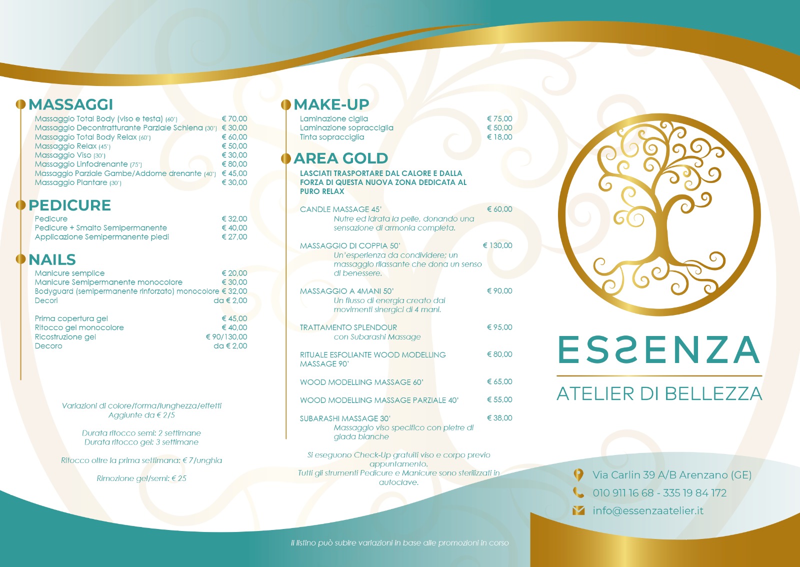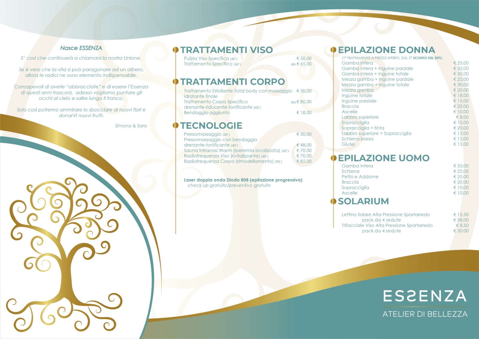 Listino trattamenti centro estetico Arenzano ESSENZA